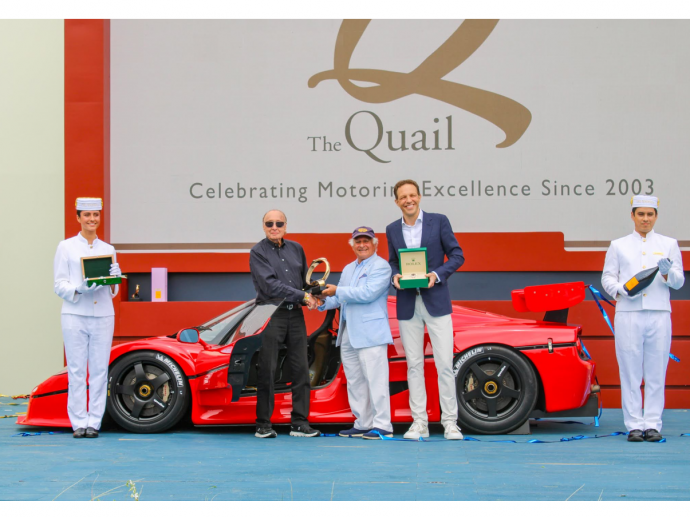 The Quail, A Motorsports Gathering returned for its 22nd year on the pristine grounds of The Quail Golf Club, where a 1996 F50 GT1 was named “Best of Show”. Owned by Art Zafiropoulo, the 1996 F50 GT1 was selected from a curated field of more than 200 entrants and stood out for its design, craftsmanship and historical significance. The winning vehicle was inducted into the prestigious Rolex Circle of Champions, a revered tradition celebrating the pinnacle of automotive excellence and its owner received a specially engraved Oyster Perpetual Datejust 36 presented by Luca Bernasconi, president and CEO of Rolex USA..