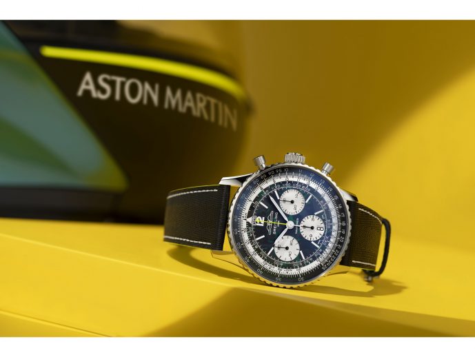 “Aston Martin and Breitling have crossed paths at key moments in design and culture,” says Adrian Hallmark, CEO of Aston Martin. “The partnership is a perfect showcase of excellence, design mastery and performance, something that is integral to everything that Aston Martin puts its name to.”