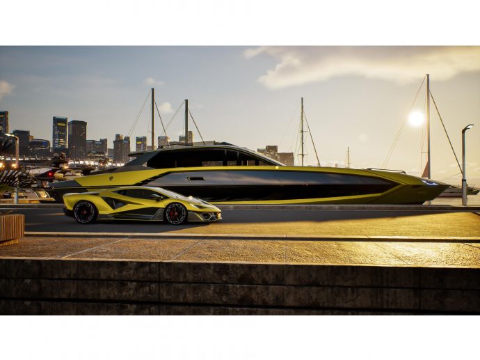 The new 101FT, named for its length of about 30 meters, embodies the synthesis between two companies that are worthy of representing Made in Italy excellence on the global level. Distinguished by high technological and design value, the project was conceived with the aim of creating an unrepeatable experience for those who drive the motoryacht, just as it is for Lamborghini customers. The model stems from the synergy between the two brands, combining the technical and engineering excellence of The Italian Sea Group with the distinctive aesthetics and innovation typical of Lamborghini’s super sports cars.