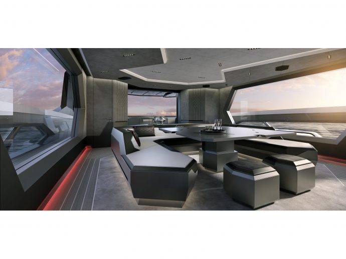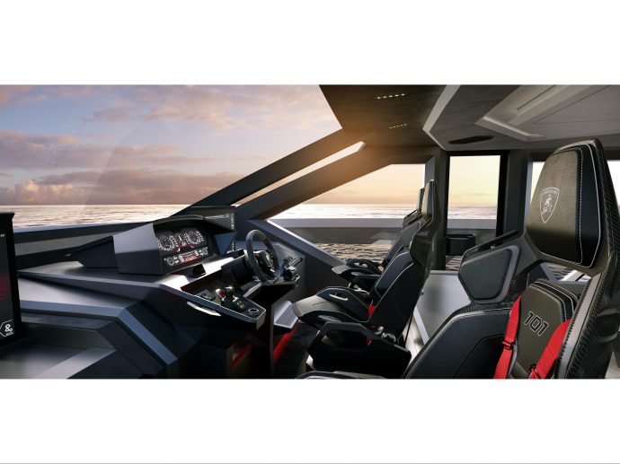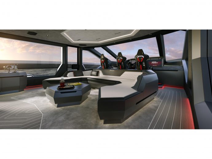 Mitja Borkert, Design Director of Automobili Lamborghini, remarked: “With the new Tecnomar for Lamborghini 101FT motoryacht, we aimed to create a product that embodies the main design characteristics of our super sports cars. All the details, from the exterior to the color, to the interior areas, recall and are inspired by Lamborghini’s DNA. Our Centro Stile, in operation for twenty years at Lamborghini’s historical headquarters in Sant’Agata Bolognese, worked with care to ensure that every element was studied in meticulous detail and reflected the brand’s unmistakable design.”