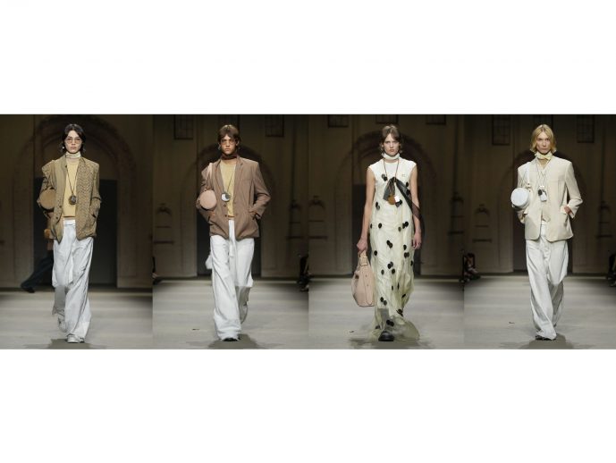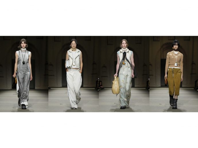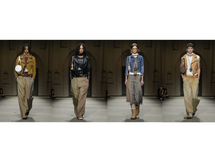 Inspired by the energy and vitality of the streets of New York City, Spring 2026 features a variety of beautifully treated leathers in suede and nappa, some with a soft, waxy finish, and others with loveworn effects and rub-off foil elements, grounded by oversized trousers in repurposed denim and workwear materials, as well as tailored pants and skirts. The palette skews light this season, with a combination of whites, honey browns and tans alongside faded blacks. Contrast comes with soft pastel blues, yellows and greens and pops of metallics.