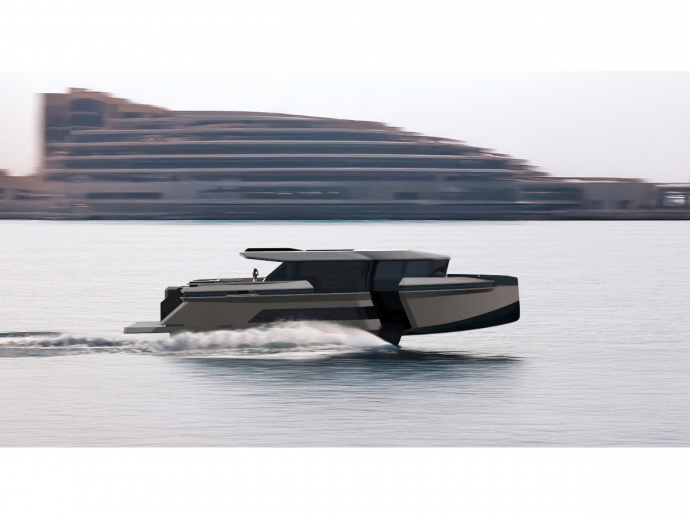 Developed in collaboration with Bozca Design, Ghost will be built by ENATA. The model represents a new era of performance, comfort, and elegance at sea. Measuring 28 metres in length with an 8-metre beam (extending to about 20 metres with foils deployed), the yacht combines advanced engineering with striking aesthetics and exceptional efficiency.
