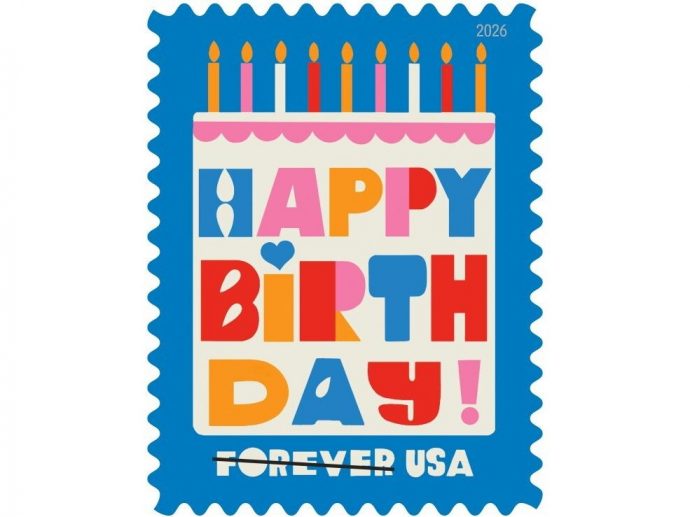 For the first time since 2021, the Postal Service will issue a stamp designed especially for birthday invitations, cards, letters and packages. "I am excited that we are issuing new Happy Birthday stamps. Many customers have submitted ideas for occasion-specific stamps such as these and we are pleased to be able to fulfill this request from the public," said Lisa Bobb-Semple, USPS stamp services director. Lisa Congdon designed the stamp using her own artwork. The project was art directed by Greg Breeding.