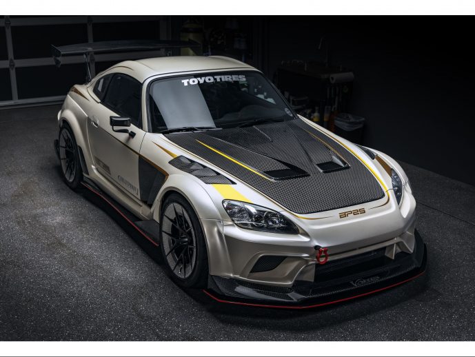 New and vintage elements similarly blend seamlessly to compliment a timeless Honda S2000 platform that maintains is popularity 25 years on. The BP25 features a brand new North American Debut of the Varis Dark Panther Widebody kit featuring an all new reskinning of the vehicle with improved carbon fiber aerodynamics for higher downforce and better grip. The vehicle also debut’s all new Brembo Pista front and rear big brake kit, which features ultra lightweight fully forged construction, and anodized finish and massive stopping power to keep the car working well thought the heat of a west coast summer trackday.