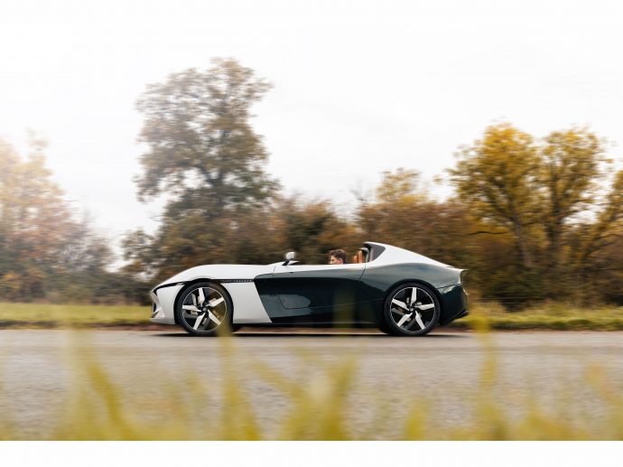 With an emphasis on ‘duality’, expressed in a distinctive two-tone paint scheme, the front of the Longbow silhouette reflects the nostalgia and timeless allure of classic sportscars, while the rear signals the modern EV platform upon which Longbow’s first two models will be built.