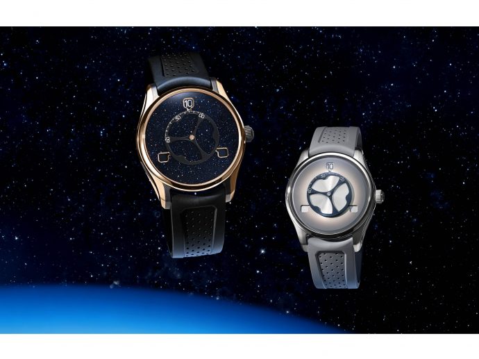 Reference 3240-0900, model in 5N red gold and titanium with black DLC coating, aventurine dial with 3 discs for the hours and a central wheel for the minutes, black rubber strap, limited edition of 100 pieces