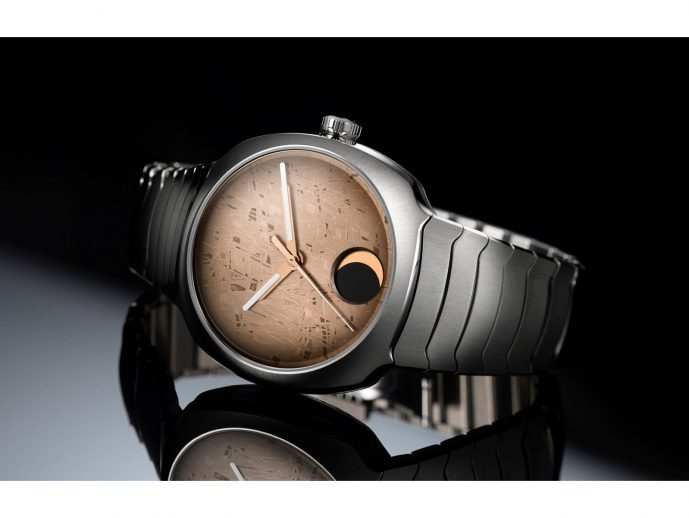 H. Moser & Cie. unveils a creation born from the meeting of Earth and cosmos. The Streamliner Perpetual Moon Concept Meteorite is much more than a watch: it is a shard of captured meteorite, a moon seized mid-flight, a fragment of the infinite come to rest on the wrist. Between the celestial void and the density of matter, it forms a secret bridge, a piece of sky transformed into watchmaking poetry.