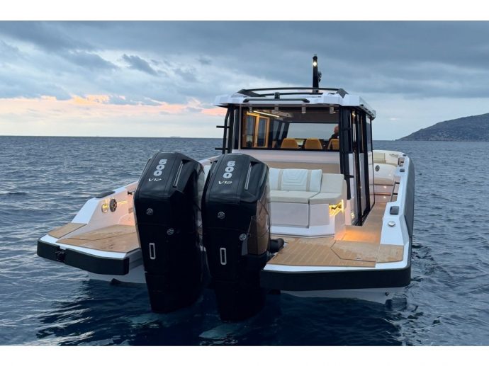 The sleeping accommodation is split forward and aft of the deck saloon – a boon for the luxury of privacy – with the forward master suite accessed via a door at the console. The cabin is comfortable and luxurious, with a generous double bed guaranteed to deliver a sound night’s sleep. There’s plenty of storage space for personal items, and a separate ensuite head with all essential amenities. The guest double is located aft of the saloon, presenting an oversized double bed and offering the perfect cosy, comfortable retreat for a restful night after exhilarating days on board. An additional skipper’s cabin below the aft sunbed can be specified for those who want to take a back seat, or perhaps for charter work.