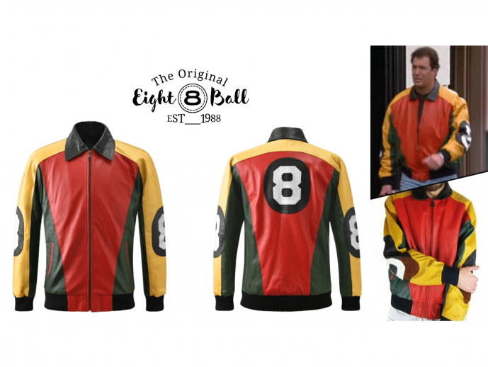 The episode Reverse Peephole subplot was all about the iconic David Puddy Seinfeld 8 Ball Jacket, the story starts by Elaine being unhappy of Puddy’s fur coat so in an attempt she throws it aways, as later Puddy see’s jerry wear a new fur coat, he gets himself a new one which is colorful and bears the signature 8 ball logo on it’s back.