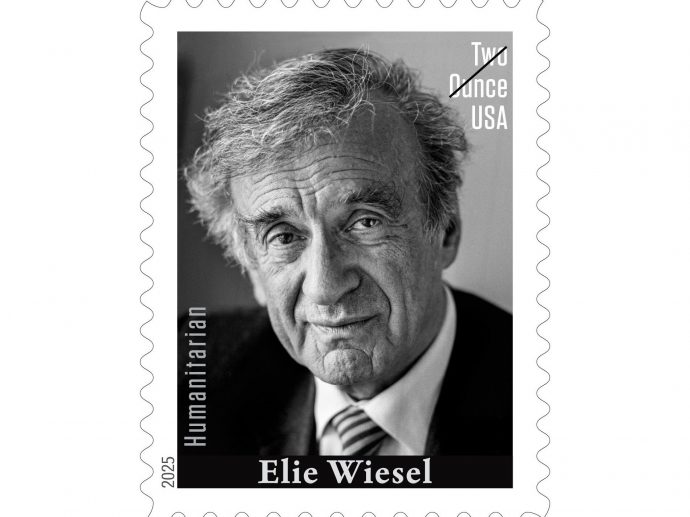 The U.S. Postal Service honored humanitarian and Holocaust survivor Elie Wiesel with a stamp. Wiesel dedicated his life to preserving the memory of the Holocaust, championing Jewish causes, and defending human rights. He is the 18th honoree in the Distinguished Americans stamp series. A dedication ceremony for the stamp was held in New York City.