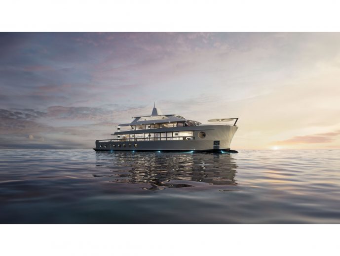 The concept prioritizes efficiency, comfort, and seakeeping over pure speed. With engines ranging from 800 to 1000 hp, the maximum speed reaches 14 knots, with cruising range optimized for long passages and fuel efficiency carefully considered.